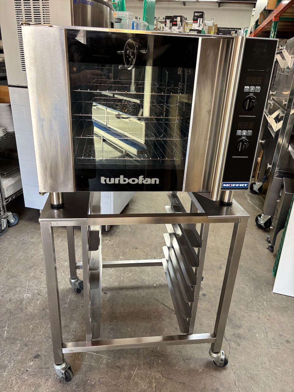 - 1/2 Sheet 4 Tray Electric Convection Oven & Stand On Wheels Moffat TurboFan E31D4 208V #4187