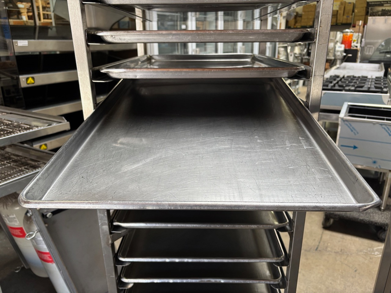 16 Ga. sheet pan has clean edges to provide easy and sanitary cleaning.