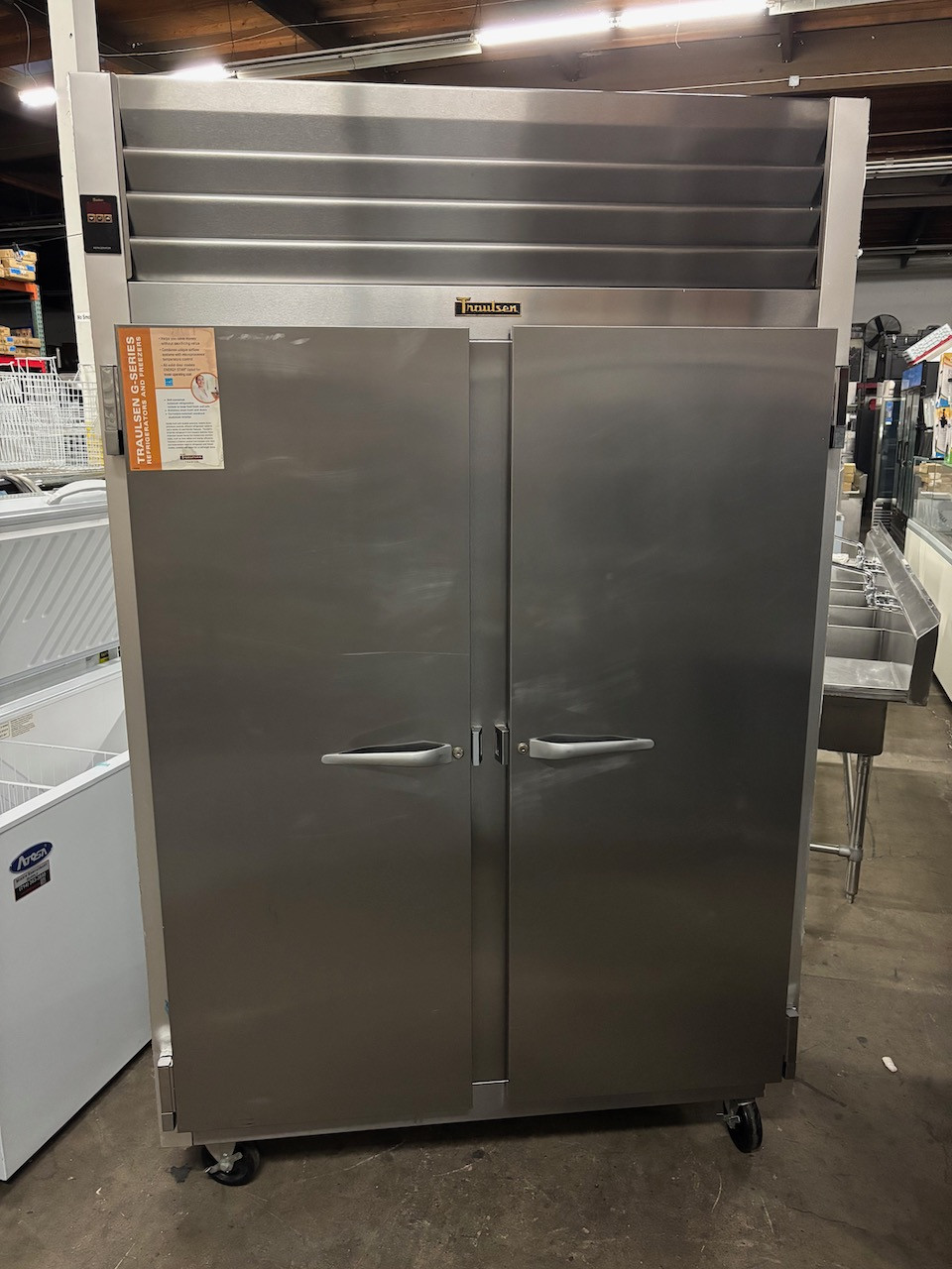 - 2 Door Refrigerator Traulsen G20010 NSF Stainless Steel Upright reach In Cooler On Wheels #3044