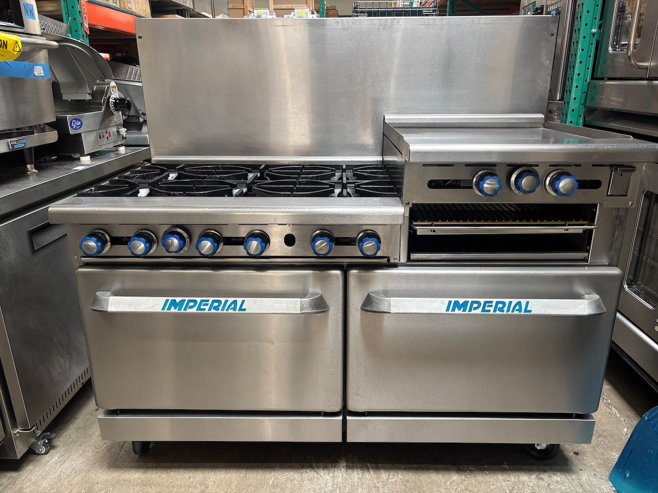 - 60" Imperial Gas Range IR-6-G24-NAT 6 Burner 24" Raised Griddle Under Broiler On Double Full Ovens #4903