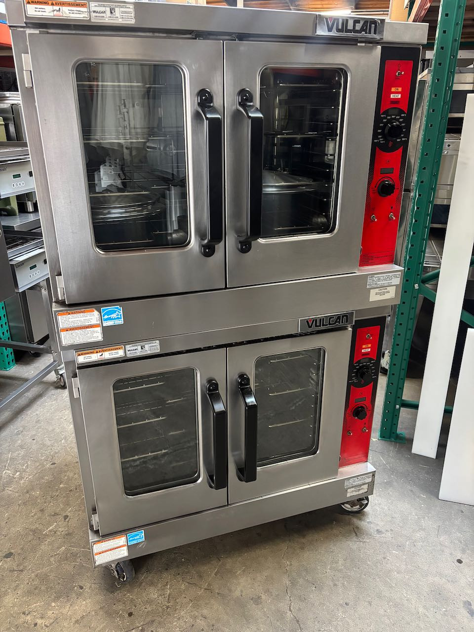 - Full Size Vulcan VC55GD-11D1 Gas Convection Ovens Double Stack On Wheels #4904