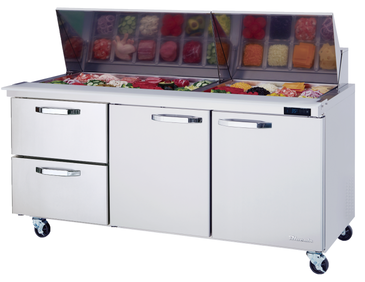 - NEW 2 Drawer (Left) 2 Door (Right) Refrigerated 72" Mega Top Prep Table Blue Air BLMT72-D2L-HC NSF Cooler #2405