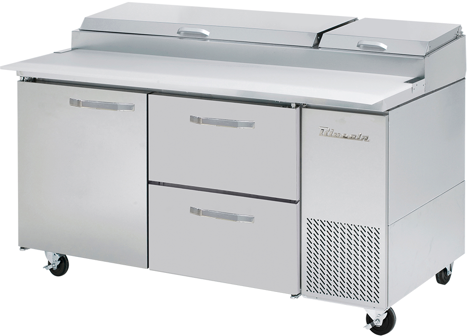 - NEW 2 Drawer (Right) 1 Door (Left) 67" Pizza Prep Table Refrigerated Stainless Steel Blue Air BAPP67-D2R-HC #2474