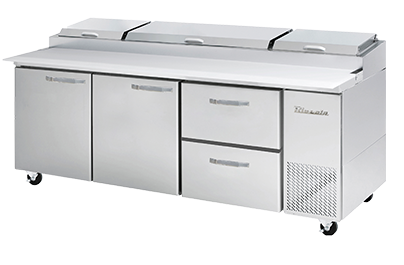 - NEW 2 Drawer (Right) 2 Door (Left) 93" Pizza Prep Table Refrigerated Stainless Steel Blue Air BAPP93-D2R-HC #2478