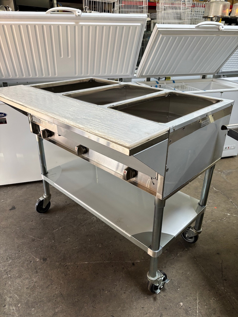 NEW 3 Open Well Nat Gas Steam Table Dry Bath Serv-It GST-3WE On Wheels #2607-OB