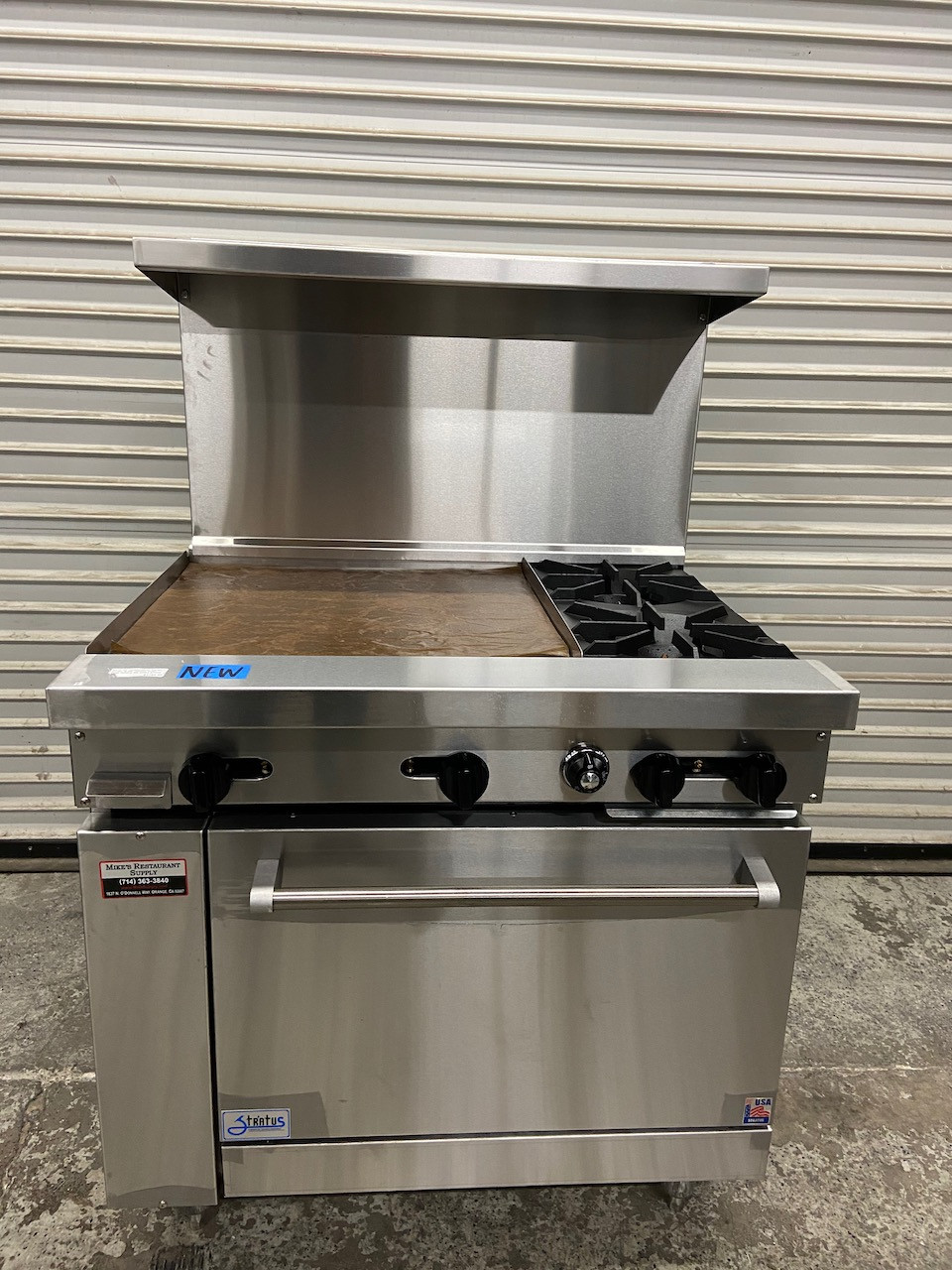 - NEW 36" LP Propane Range 2 Open Flame Burner & 24" Griddle W/ Full Oven Stratus SR-2G24-LP On Wheels #7269
