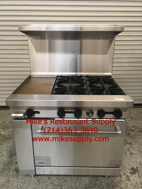 - NEW 36" LP Propane Range 4 Open Flame Burner & 12" Griddle Flat Top & Full Oven Base Stratus SR-4G12 LP On Wheels #7268