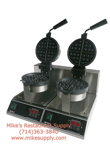 Belgian waffle makers are perfect for breakfast spots, diners and any other establishments that wants to add hot and fluffy Belgian waffles to their menu. Cook up to twenty 1.25” thick waffles (per side) per hour with our round 7” double Belgian Waffle maker. Constructed with a stainless steel body for durability and easy cleaning. Heavy cast aluminum non-stick coated plates for easy and safe product release. 180 degree rotating hinge for even batter distribution. Easy to set digital timers and temperature controls make using simple enough for everybody. Two removable stainless steel drip pans are included for easy cleaning. 120V. This double model also features two 5’ long power cords with NEMA 5-15 plugs. Our units are CE Certified and backed by Adcraft’s 1 year warranty.