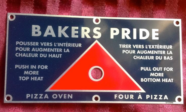 INSTRUCTION PLATE 6" X 3" (2-7/8" X 2-3/4" CTRS, PUSH IN -FOR MORE TOP HEAT, PULL OUT -FOR MORE BOTTOM HEAT FOR NEW STYLE CAST PLATE ORDER U1356X BAKERS PRIDE