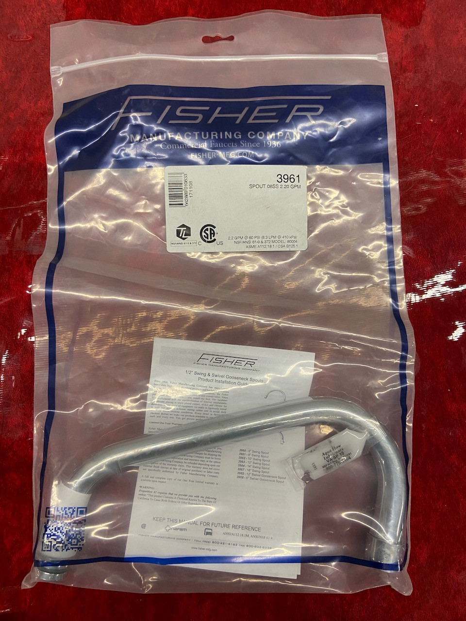 NEW Faucet Spout 8" long Fisher 3961 Commercial 1/2" #3765