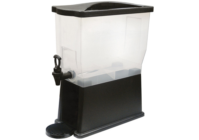 The 3 gallon (11.3L) slim rectangular plastic beverage dispenser is an excellent option when counter space is limited. Features include a dripless faucet, a graduated reservoir that is detachable from the 8″ high stand, and a removable drip tray and lid for easy refilling and cleaning. Also available in a compact square footprint.